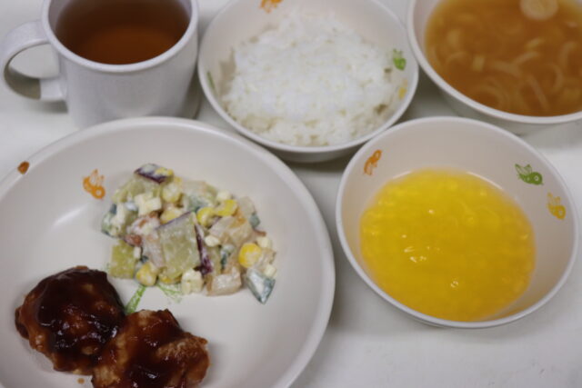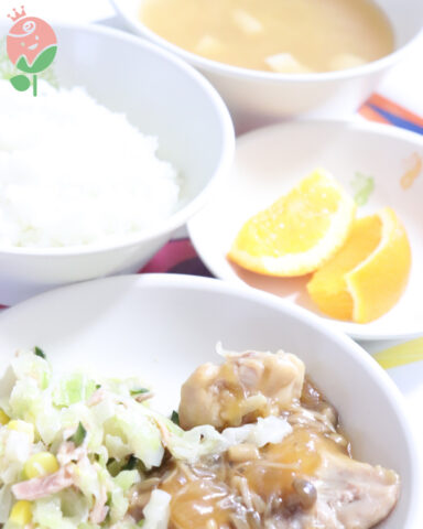 今日のお昼ご飯はなんだろう?今月のおすすめレシピは? 気になる毎日のおいしさと栄養をご紹介します。 ・豚肉の生姜炒め・ひじき煮・麦入りごはん・味噌汁・オレンジ・アジの味噌マヨネーズ焼・切干大根の煮物・ごはん・すまし汁・パイン・和風ツナスパゲティ・チキンナゲット・ブロッコリーとハムのサラダ・スープ・鶏肉のトマト煮・スティック野菜・食パン・スープ・ピーチゼリー・白身魚のパン粉焼き・焼じゃが・ほうれん草の白和え・ごはん・すまし汁・サケの塩焼・ふろふき大根・ごぼうの噛むカムサラダ・ひじきのふりかけごはん・味噌汁・麻婆豆腐・春雨サラダ・ごはん・スープ・オレンジ・肉汁うどん・焼かぼちゃ・ちくわの磯辺揚げ・サバのみそ煮・にんじんシリシリ・ごはん・すまし汁・黄桃・トマト入りハッシュドポーク・さつまいものサラダ・たまごスープ・お誕生日ケーキ・チャンポン・春巻・小松菜のナムル・オレンジ・白身魚のチーズ焼き・ビーフンソテー・キャベツとちくわのお浸し・菜めし・味噌汁・ケチャップライス・ツリーのハンバーグ・ポテトサラダ・スープ・フルーツゼリー・キーマカレー・かみかみサラダ・パインヨーグルト・鶏肉のきのこソース・ツナサラダ・ごはん・味噌汁・オレンジ・まぐろフライ・かぼちゃの甘煮・マカロニサラダ・ごはん・味噌汁・豚丼・ほうれん草のお浸し・味噌汁・パイン・サバの甘辛焼・高野豆腐の煮物・白菜の胡麻マヨ和え・麦入りごはん・味噌汁・鶏肉のバーベキューソース・ころころサラダ・ごはん・味噌汁・オレンジゼリー 12月