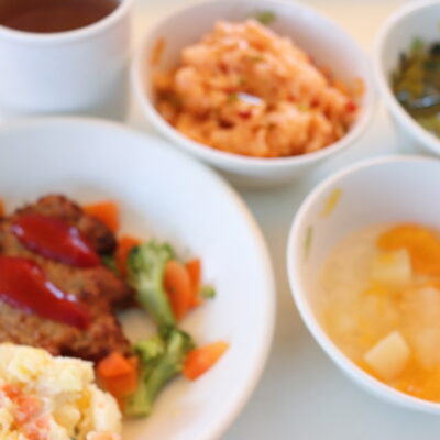 管理栄養士さんと毎日打ち合わせをしています 例えば、暑い日が続き、汗をかく事が増える時期には「少し塩分を増やしましょう」など、その日の献立の反省を通して、次回へのステップにしています。 毎日の検食では、お子様が口にする前に、園教職員が行っています 献立内容によって、硬さ、味付け、分量、盛り付け、色彩、異物混入などチェックリストで確認し、安全なものをご提供しています。