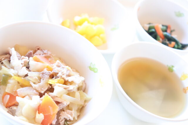 今日のお昼ご飯はなんだろう?今月のおすすめレシピは? 気になる毎日のおいしさと栄養をご紹介します。 ・タンドリーチキン・マカロニソテー・花野菜サラダ・ごはん・スープ・肉汁うどん・蒸しさつま芋・もやしとチンゲン菜の菜種和え・みかん・赤魚の竜田揚げ・白菜の塩昆布和え・ごはん・味噌汁・パイン・三食丼・キャベツとツナの和え物・味噌汁・バナナ・鶏肉のバーベキューソース・ポテトフライ・白菜のサラダ・ごはん・スープ・塩ラーメン・かぼちゃの甘煮・スティック野菜・型抜きチーズ・サバの煮付け・ビーフンソテー・菜の花とキャベツの和え物・麦入りごはん・味噌汁・ピラフ・牛肉コロッケ・具だくさんスープ・プリン・中華丼・肉しゅまい・スープ・バナナ・カレーライス・ブロッコリーサラダ・みかん・鶏肉の塩こうじ焼・じゃが芋のマヨ焼・切干大根サラダ・ごはん・味噌汁・スパゲッティナポリタン・チーズサラダ・スープ・フルーツヨーグルト・白身魚のカレー風味揚げ・小松菜のおかか和え・ごはん・味噌汁・パイン・ハンバーグデミグラスソース・人参グラッセ・ごぼうサラダ・ごはん・スープ・スタミナ焼肉丼・ほうれん草のお浸し・味噌汁・黄桃・麻婆豆腐・キャベツのサラダ・ごはん・スープ・オレンジ・白身魚のタルタル焼・焼かぼちゃ・アスパラのサラダ・ごはん・味噌汁・ポークシチュー・ツナサラダ・パン・バナナ・鶏肉の唐揚げ・マカロニサラダ・ごはん・味噌汁・みかん・鶏肉のトマト煮・かみかみサラダ・ごはん・スープ・オレンジ昭和の日 休園日・ミートローフ・ミニポテト・ほうれん草ソテー・ごはん・スープ 4月